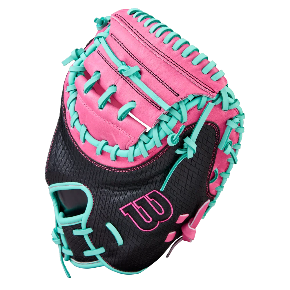 A 12.5” first base mitt with a single break design, deep pocket and Pro Stock® leather construction.